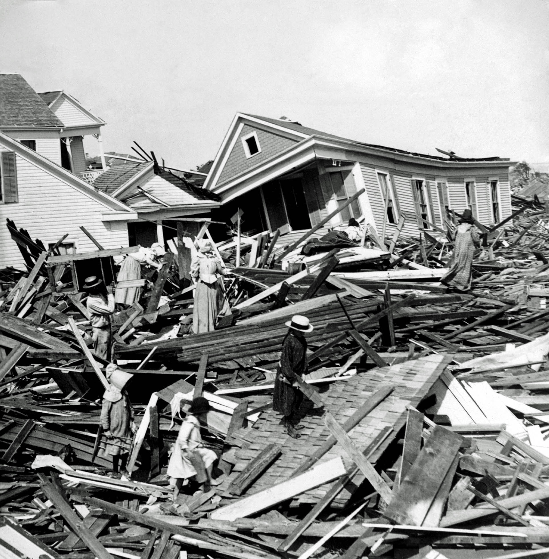 The deadliest hurricane in U.S. history also occurred in Texas. The Great Galveston Hurricane of 1900 was a category 4 hurricane that made landfall on Sept. 8, 1900 in Galveston, Texas. It had winds up to 233 km/h (145 mph) along with a storm surge of 4.6m (15 ft). An estimated 8,000 people died as a result of the hurricane, primarily due to the storm surge.