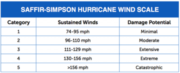 The relative intensity of a hurricane is categorized by a chart known as the Saffir-Simpson